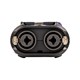 As duas entradas bloqueáveis XLR/TRS suportam phantom power +48 V e nível de linha +4 dBu. Há ainda uma entrada estéreo de 3,5 mm com plug-in power.