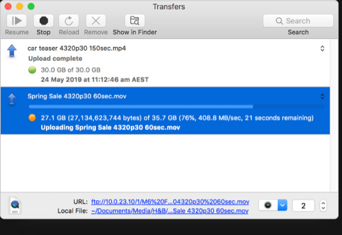 Todos os modelos HyperDeck permitem carregar arquivos de mídia remotamente usando um software de cliente FTP convencional. Com Ethernet 10G integrada ao HyperDeck Studio 4K Pro, as transferências são tão rápidas que superam os cartões SD e os discos SSD. Para controle de deck remoto, todos os modelos utilizam um protocolo simples baseado em texto, assim pode usar um app de terminal como Telnet para testar comandos de controle. É só fazer login no HyperDeck, digitar “Play” ou “Record”, e ele executará o comando. Simples assim! Ao combinar protocolo de controle e transferências de arquivo com um HyperDeck conectado a uma matriz de disco USB-C grande, obtém um servidor broadcast para gestão de mídias e playout.