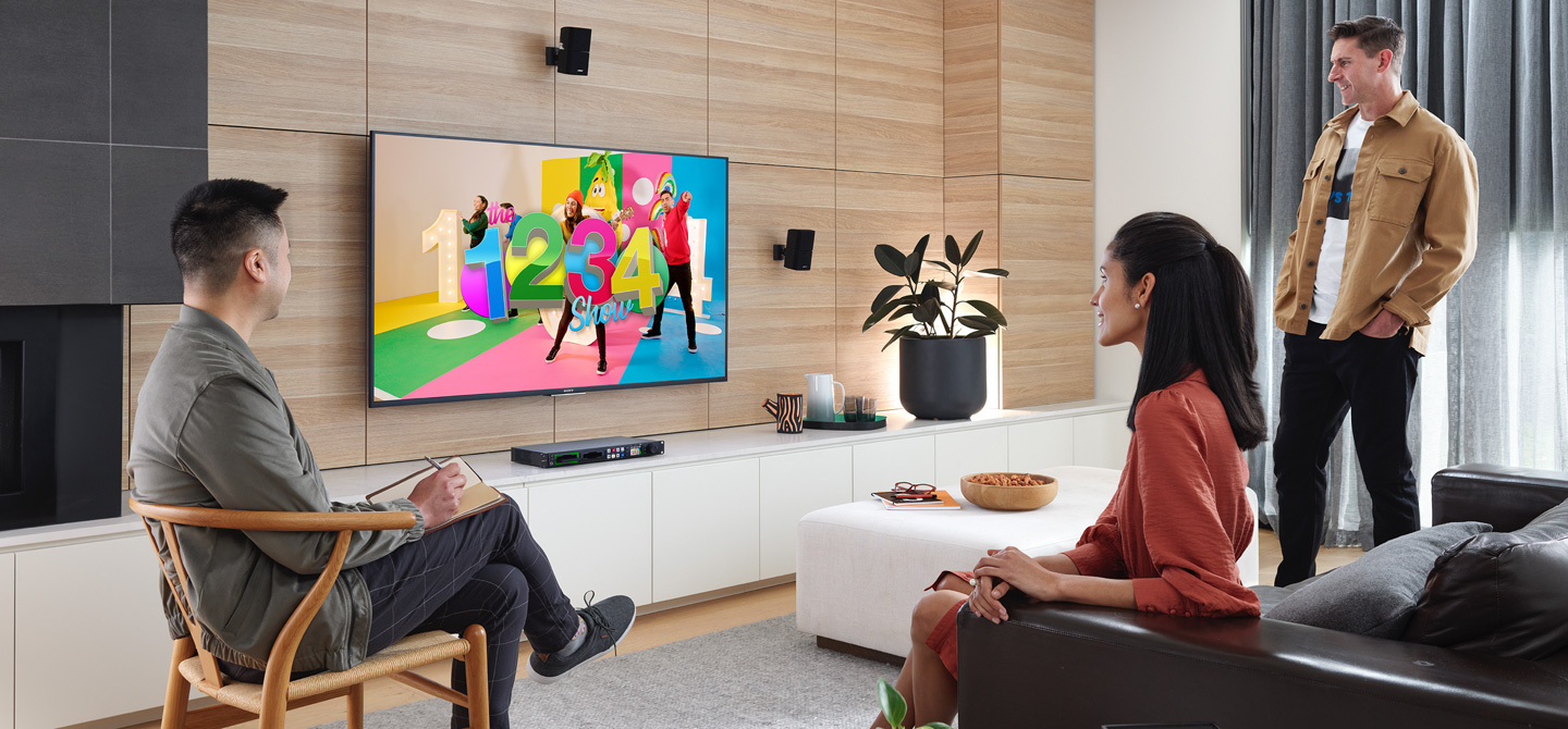 Reprodução em TVs e projetores domésticos.