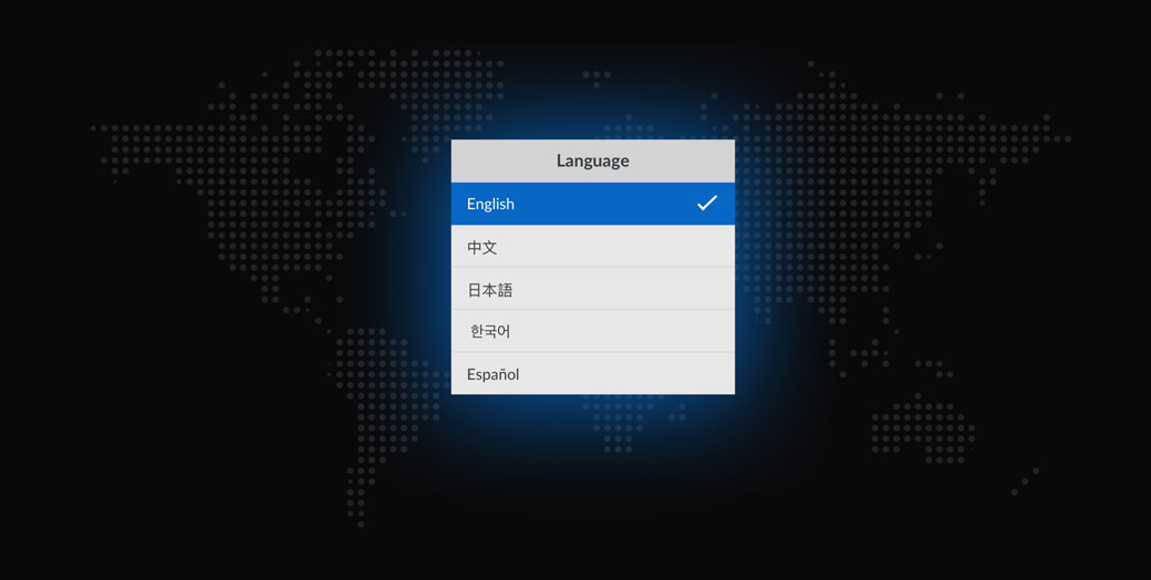 O HyperDeck Studio suporta vários idiomas para que não precise aprender uma nova língua apenas para utilizá-lo. Obtém suporte para inglês, chinês, japonês, coreano, espanhol, alemão, francês, russo, italiano, português, turco, polonês e ucraniano. Quando ligado pela primeira vez, o HyperDeck Studio exibirá um menu de seleção de idioma. No entanto, pode usar o menu LCD para alterar o idioma a qualquer momento no futuro. Quando um idioma é selecionado, os menus LCD e as sobreposições na saída de monitoramento SDI mudarão para a língua selecionada. Tudo isso significa que o HyperDeck Studio é perfeito para trabalhos em qualquer lugar do mundo.