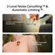 Três predefinições de tom de voz, dois níveis de cancelamento de ruído