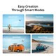 Combina de forma inteligente trajetórias de voo de retrato, proximidade ou paisagem, consoante a cena. Fornece modelos estilísticos e edita automaticamente a filmagem, transformando principiantes em verdadeiros criadores.